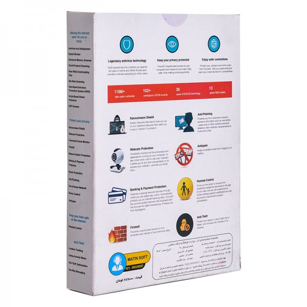 نسخه 2026 | دو کاربره (دو کاربر فقط کامپیوتر) | از بین برنده هرگونه تهدید شامل ویروس و ... | مقاومت در برابر هکرها جهت پیشگیری از کنترل کامپیوتر توسط آنها | بالا بودن سرعت اسکن | جلوگیری از دسترسی غیرمجاز | حجم 150 مگابایت | پشتیبانی 12 ماهه | ناشر و پشتیبانی اثر پردازش هوشمند پارسیان داتیس