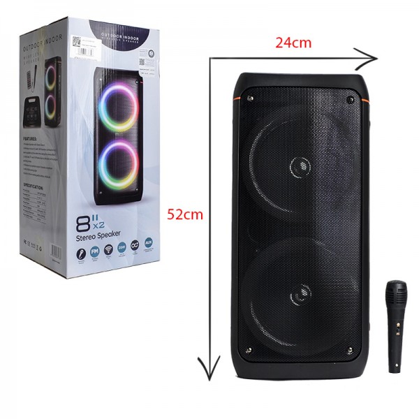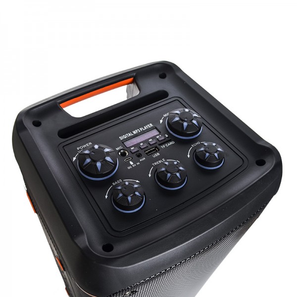 گارانتی 12 ماه تعویض شرکت پژواک رایانه فرداد | ابعاد 528*238*249 میلی متر | اتصال بلوتوثی | خروجی 20 وات | ظرفیت باتری 4400 میلی آمپرساعت | سایز اسپیکر 8inch*2 | پشتیبانی از کارت حافظه، فلش مموری، AUX و رادیو FM | فناوری TWS | رقص نور RGB | به همراه یک ریموت کنترل و میکروفون با پشتیبانی از کارائوکه