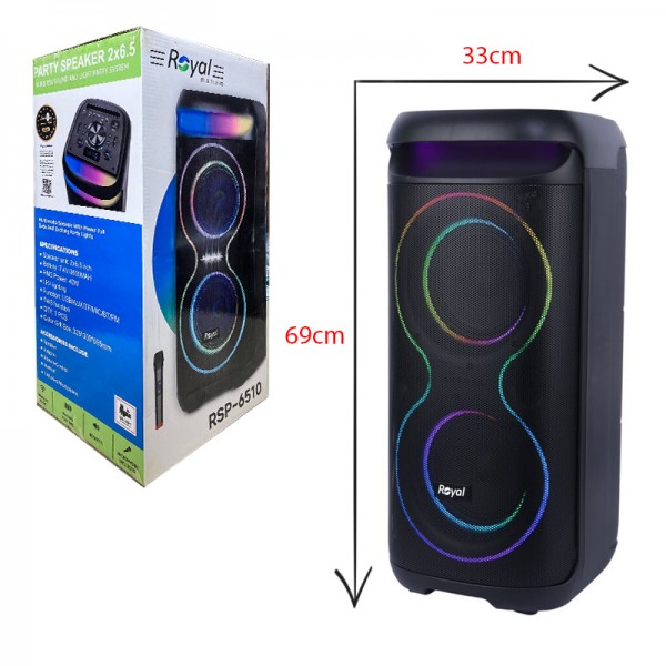 اسپیکر بلوتوثی پارتی باکس رویال مدل RSP-6510 یکی از محصولات کاربردی و خوشساخت برند رویال است که با تمرکز بر پخش صدای قدرتمند، امکانات متنوع و طراحی مناسب مهمانیها و دورهمیها عرضه شده است. این پارتیباکس با ابعاد متعادلتر نسبت به مدلهای بزرگتر، گزینهای مناسب برای استفاده خانگی، مراسم کوچک و فضاهای نیمهباز محسوب میشود.
