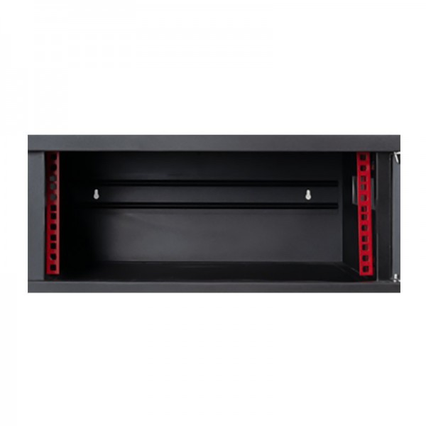 این مدل با عمق 45 سانتیمتر و عرض 56 سانتیمتر ساخته شده و فضای داخلی آن کاملاً مطابق استاندارد 19 اینچ طراحی شده است؛ استانداردی که امکان نصب طیف گستردهای از تجهیزات شبکه را فراهم میکند. بهکارگیری ساختار دقیق و ابعاد استاندارد باعث میشود تجهیزات بدون فشار، لرزش یا محدودیت در فضای رک قرار گیرند.