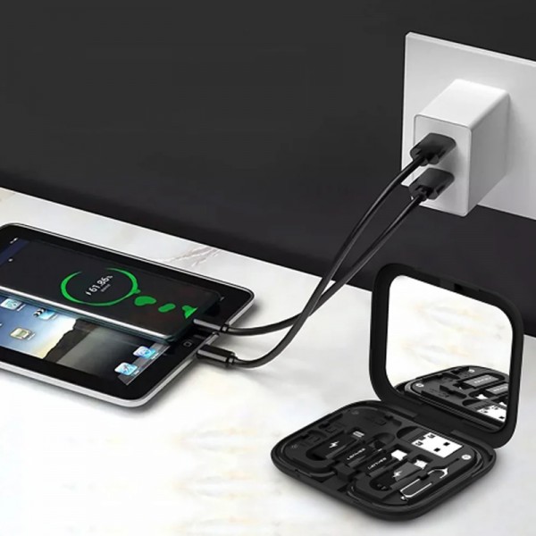 گارانتی 12 ماه | امکان ذخیره سازی انواع کابل و تبدیل | اندازه کوچک و حمل آسان | کابل شارژ سریع 60 واتی Type-C به Type-C | درب کیف را میتوان به عنوان یک پایه تلفن تاشو استفاده کرد | مناسب برای شارژ و انتقال دیتا | مرتب سازی لوازم جانبی | دارای آینه داخلی
