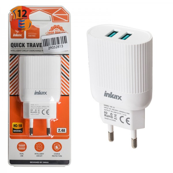 فروش عمده کلگی شارژر 12 وات 2 پورت اینکاکس (inkax) مدل HC-10