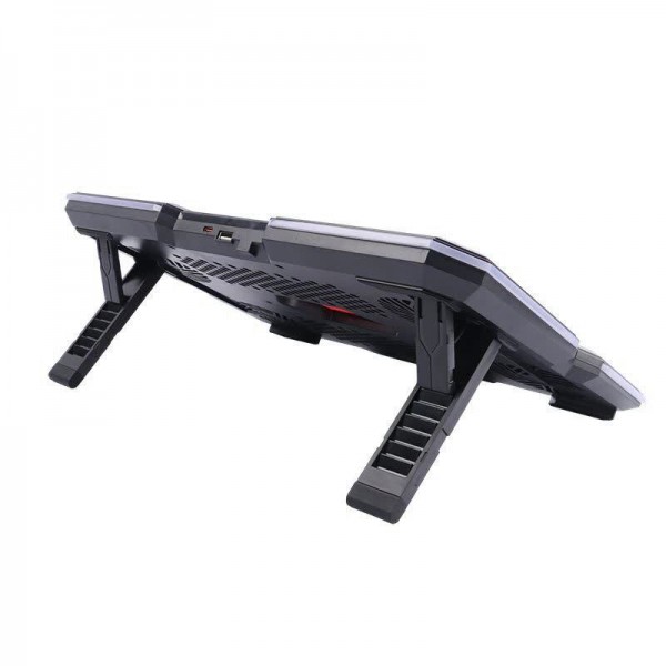 جنس بدنه کول‌پد از ABS مقاوم ساخته شده که علاوه‌بر وزن مناسب، مقاومت خوبی در برابر فشار و استفاده روزمره دارد. نورپردازی RGB نیز جلوه بصری جذابی ایجاد کرده و آن را برای ستاپ‌های گیمینگ و میزهای کار حرفه‌ای مناسب می‌کند.