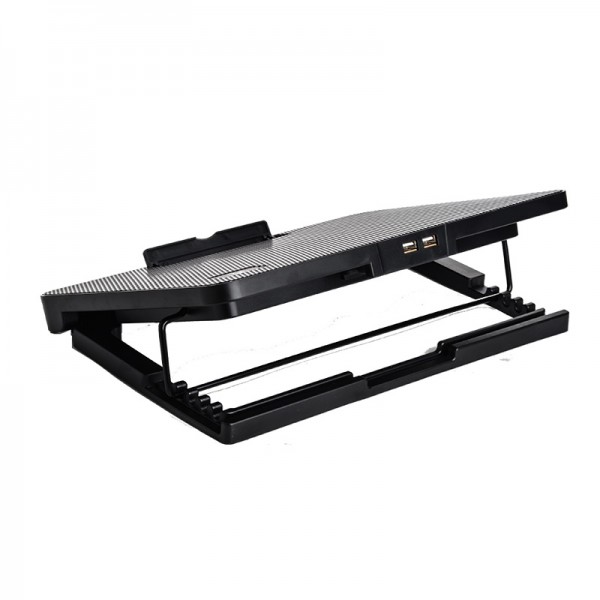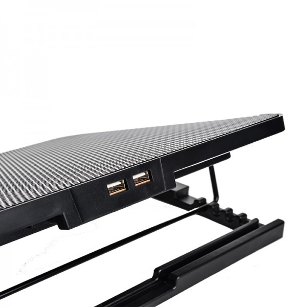 این پایه خنککننده به دو پورت USB-A مجهز شده است تا پس از اتصال فن به لپتاپ، کاربر همچنان بتواند از پورت USB آزاد برای اتصال تجهیزات جانبی استفاده کند. تأمین انرژی فنها از طریق USB انجام میشود و نیازی به آداپتور یا منبع تغذیه جداگانه وجود ندارد.