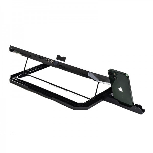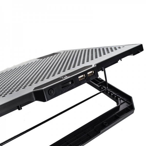 این فن مجهز به سیستم خنککننده پنجگانه است که شامل یک فن 14 سانتیمتری بزرگ در مرکز و چهار فن 7 سانتیمتری در اطراف است. این ترکیب، جریان هوای قدرتمندی را ایجاد میکند و به طور موثر حرارت لپ تاپ را دفع میکند.