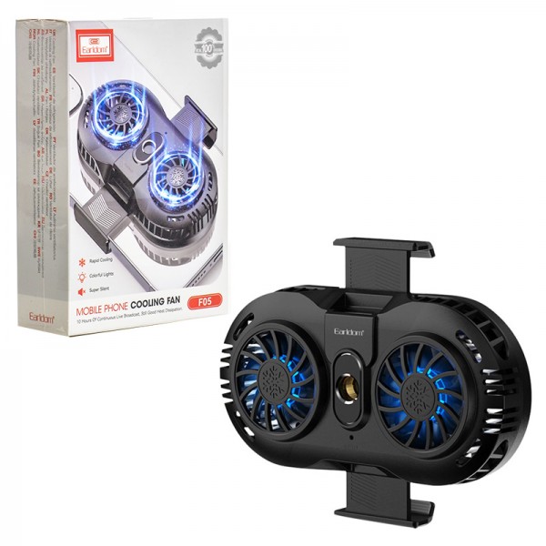 یکی از نکات قابل توجه در فن خنککننده Earldom مدل ET‑F05، طراحی دوگانه فنهاست که بهصورت همزمان هوا را به جریان درمیآورد. این طراحی باعث میشود تا گرما به سرعت از گوشی خارج شود و خنککنندگی به صورت یکنواخت انجام گیرد. سرعت چرخش فنها به گونهای تنظیم شده که جریان هوا قدرتمند و پایدار باشد.