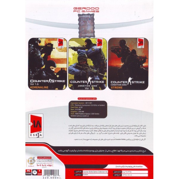 Counter Strike Adrenaline ver 1.6 | Counter Strike Condition ZERO XTREME | Counter Strike Condition ZERO ver 1.6 | یک حلقه DVD9 | قیمت پشت جلد 32,000 تومان | رده سنی +18 | سبک بازی اکشن