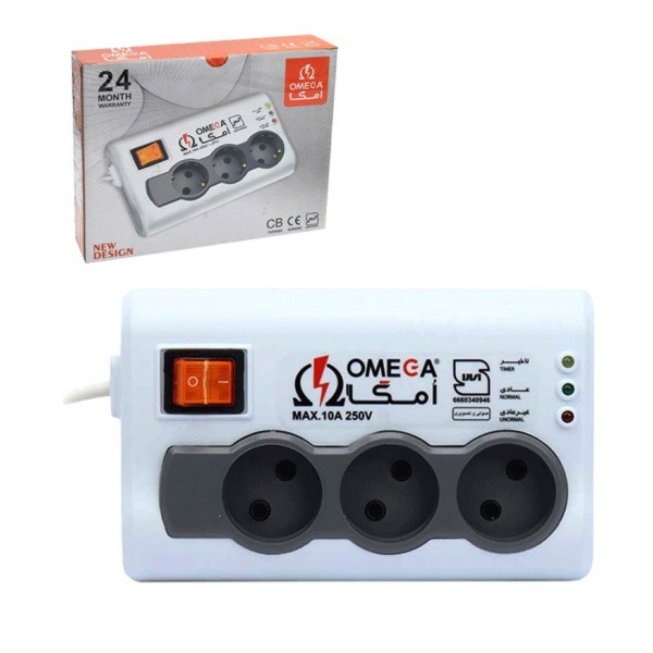مناسب برای کامپیوتر و لوازم صوتی و تصویری | داری 3 چراغ LED برای وضعیت محافظ، زمان تاخیر 30 ثانیه | حداکثر توان 2500 ولت آمپر | حداکثر جریان 10 آمپر | بدون ارت | پیشگیری از خطرات ناشی از نوسانات برق