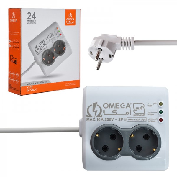 محافظ برق 2 خانه یخچال فریزر معمولی ارت دار امگا مغزی پلی آمید مدل P4000