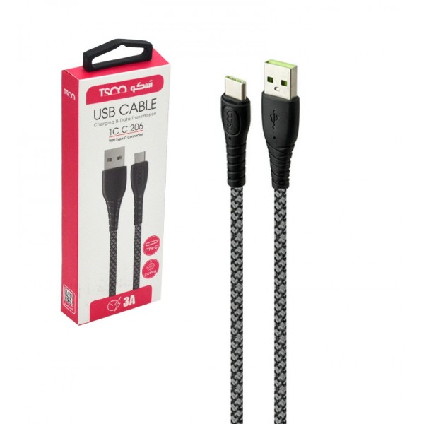 کابل TC C206 تسکو 1 متر طول دارد و رشتههای مسی آن با استفاده از روکشی از جنس کنفی پوشانده شدهاند. این روکش مقاومت زیادی دارد و رشتههای مسی داخل کابل را در برابر قطعشدن براثر کشیدن ، خم شدن و گره خوردن مقاوم کرده است؛ کانکتورهای به کاررفته در این کابل بسیار مقاوم هستند.