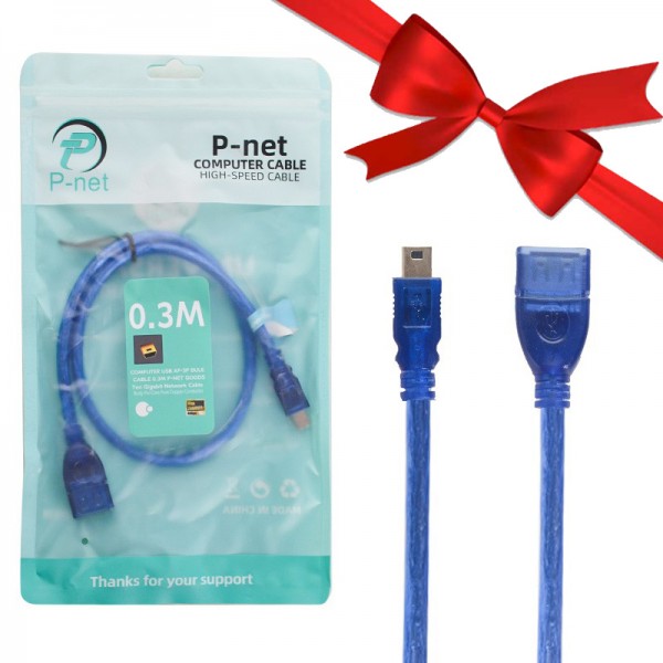 بسته 1+10 کابل افزایش طول موبایل و دوربین 5 پین ذوزنقه ای USB AF/5P پی نت (P-net) طول 0.3 متر (یک عدد هدیه)