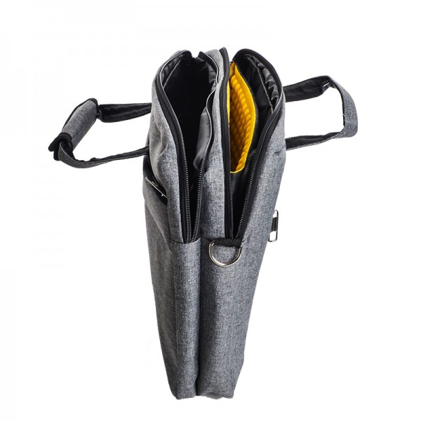 در بخش محافظتی، کیف مجهز به ضربهگیر حبابدار داخلی است؛ لایهای نرم و مقاوم که از لپتاپ در برابر ضربه، فشار و لرزشهای ناگهانی محافظت میکند. این لایه علاوه بر محافظت مستقیم از بدنه لپتاپ، مانع از جابهجایی آن در محفظه داخلی میشود و ایمنی دستگاه را در حمل و نقل افزایش میدهد. چنین ساختاری برای کاربرانی که لپتاپ خود را بهصورت روزمره یا در مسیرهای پرتردد حمل میکنند، اهمیت ویژهای دارد.