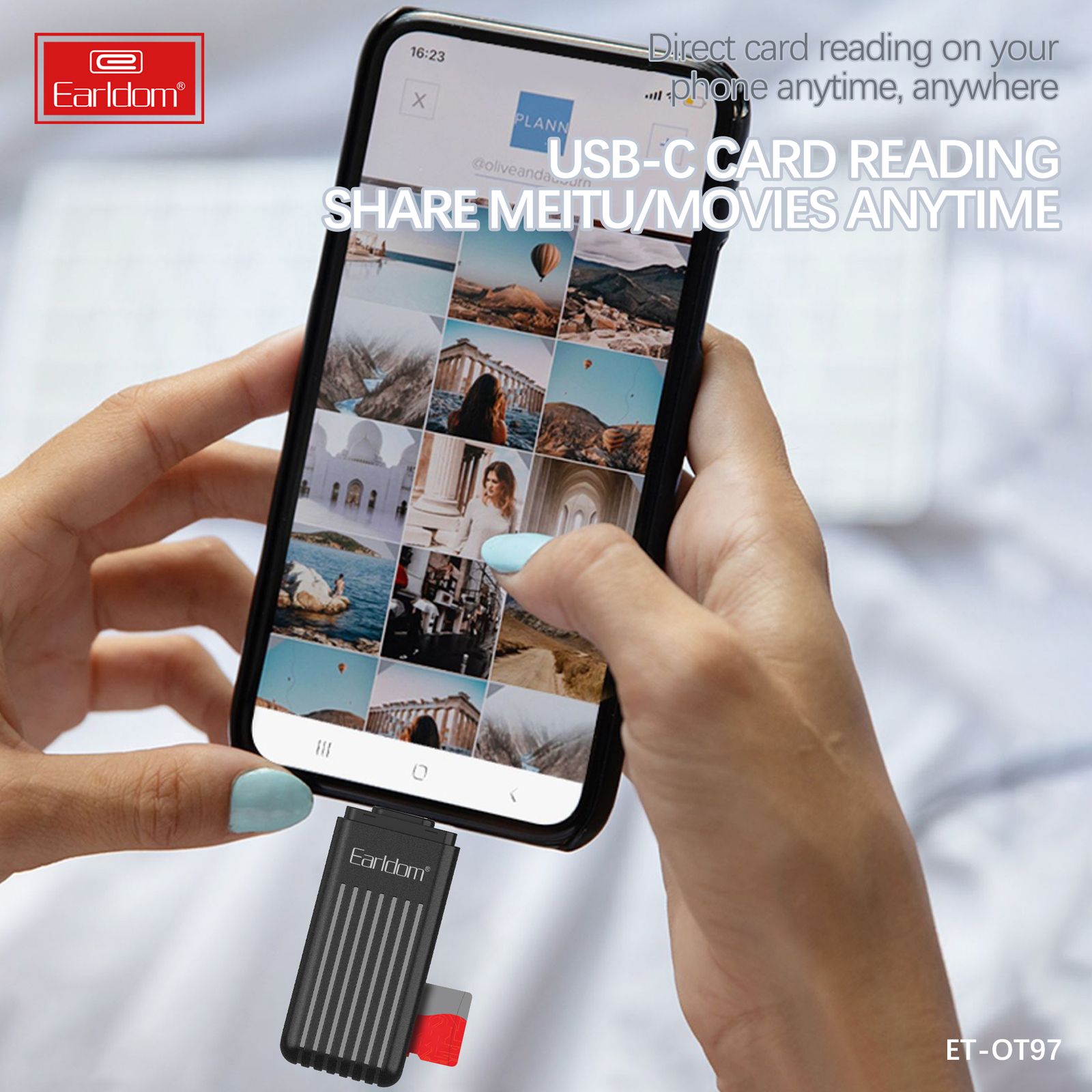 رم ریدر ارلدام مدل ET-OT97 از طراحی مینیمال، شیک و در عین حال مقاومی برخوردار است. ابعاد جمعوجور آن باعث میشود بهراحتی در جیب و کیف قابل حمل باشد. بدنهی این رم ریدر از متریال مقاوم و ضدضربه ساخته شده که دوام و طول عمر بالای آن را تضمین میکند. ترکیب طراحی مدرن و شیک، آن را به گزینهای مناسب برای کاربران حرفهای و معمولی تبدیل کرده است. در قسمت بدنه این رم ریدر، دو شیار برای کارتهای حافظه SD و TF (microSD) تعبیه شده که امکان استفاده همزمان از هر دو کارت را فراهم میکند.